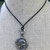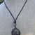 Die Kette misst 92 cm ist aus geflochtenem Ziegenleder mit einem Anhänger aus